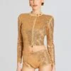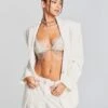 Introducing our Ainsley Jacket, adorned with gold buttons and two chic slit pockets on the chest. Crafted to perfection, this bandage knit jacket is a timeless addition to your wardrobe that effortlessly combines comfort, style and sophistication. Shown here in White/Black.
