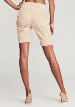 Our Amanda Short reimagines the trend-forward biker short in a luxe fabrication. Designed in suede, the moto-inspired style features panel details and an exposed front zipper. Pair it with a relaxed tee or your favorite oversized blazer and our Pia bralette for a bold day-to-night look. Shown here in Hummus Suede.