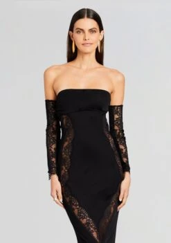 Introducing our mesmerizing Chandler Dress – it’s a true embodiment of sophistication and allure. This exquisite piece is adorned with an open back featuring sheer lace detailing throughout with entirely removable sleeves, allowing you to effortlessly switch between casual and sensual elegance. Shown here in Black.