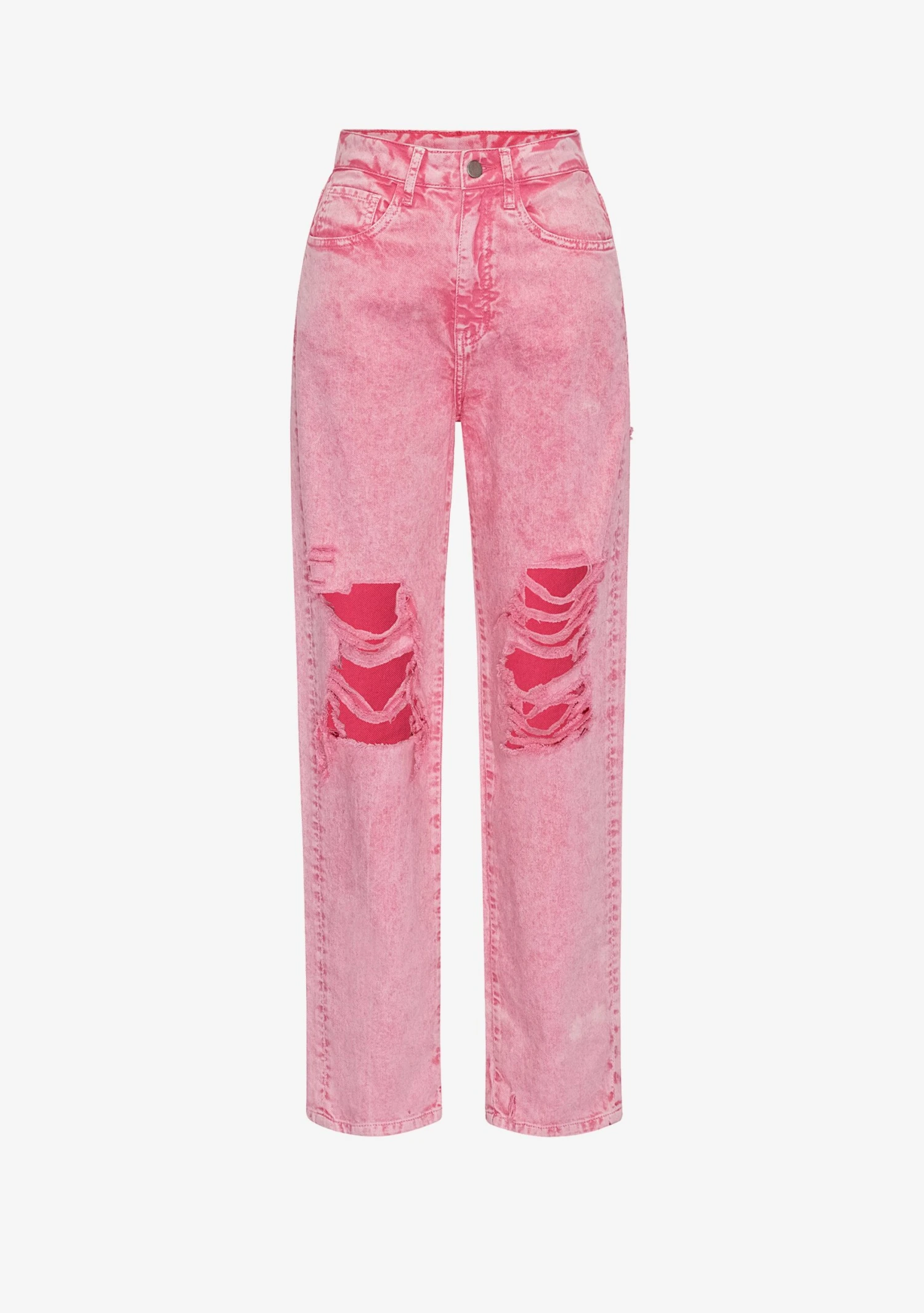 Meet our best-selling Chris Jean: your newest wardrobe essential. Crafted with a loose fit and heavy distressing on the knees, these mid-rise pants add a relaxed feel to any outfit. Pair with a blouse and heels for night time or with one of our TD T Shirts for an easy daytime look. Shown here in Vintage Pink.Â