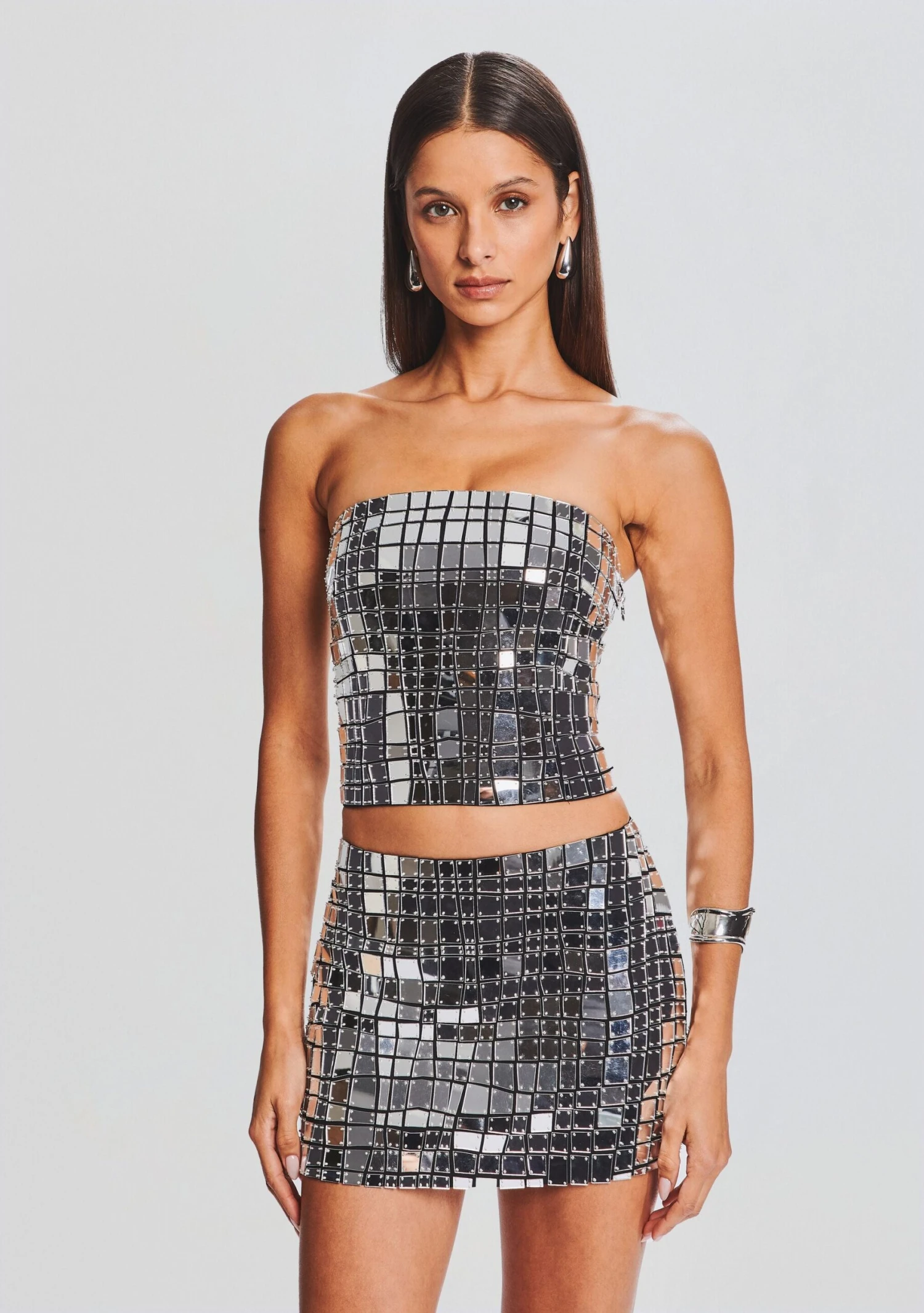 Unleash your radiance with our Daniella Top. Crafted to stand out, this top features dazzling crystals that add a touch of glamour and individuality. The shimmering embellishments create a captivating effect, ensuring all eyes are on you. Embrace your distinct style and make a lasting impression wherever you go. Shown here in Black/Silver.