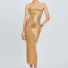 Master the art of dressing with our Elira Dress. This dramatic strapless dress features a shirred waistline, complemented by a left side slit. Shown here in Acid Roses.