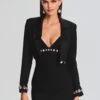 Evoke sophistication in our Enid Blazer. This long sleeve blazer jacket features a button-up front, side flap pockets, and sequin embellishments throughout. Shown here in Gray.