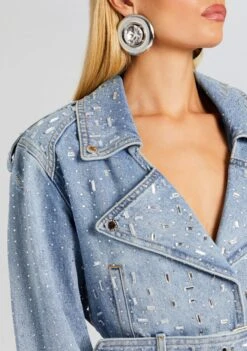 Make a statement in our Marcie Jacket – a chic fusion of denim sophistication and captivating embellishments. Elevate your style game with this eye-catching jacket adorned with intricate embellishments, featuring a classic collar and a flattering belted silhouette. Shown here in Tresca.