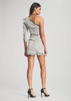 Make a bold statement in the Moira Top. The asymmetrical top is crafted out of subtly faded denim and complemented by a one-shoulder puffed sleeve. The style is finished with a side zipper. Shown here in Light Acid Grey.