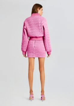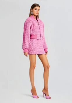 Introducing our Morgana Jacket – the epitome of Barbiecore-inspired chic that effortlessly combines style, comfort, and a touch of glamour. This jacket is designed to make you turn heads with its vibrant pink hue, dazzling embellishments, and cozy quilted design that can be worn day to night. Shown here in Begonia Pink.