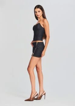 Add our Nyla Skirt to your wardrobe. This denim micro mini features a zippered front detail, allowing for an adjustable side slit, and carefully stitched hem. Pair with our Allie Top for a sleek co-ord look. Shown here in Rinse.