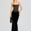 Calling all of our golden girls- Our Perri Dress shimmers with elegance, ensuring you’re the center of attraction. This breathtaking gown features a radiant metallic finish, a plunging neckline that commands attention, and a body-con silhouette that flatters your every curve. Shown here in Champagne Dust.