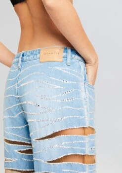 Elevate your denim wardrobe with our Renzo Jean, where every step is a dazzling display of glamour. Adorned with sequin embellishments and chic front pockets, these jeans redefine casual elegance. The trendsetting cutout design adds a touch of edginess, making these pants a must-have for people seeking a perfect blend of comfort and sophistication. Shown here in Bondi.
