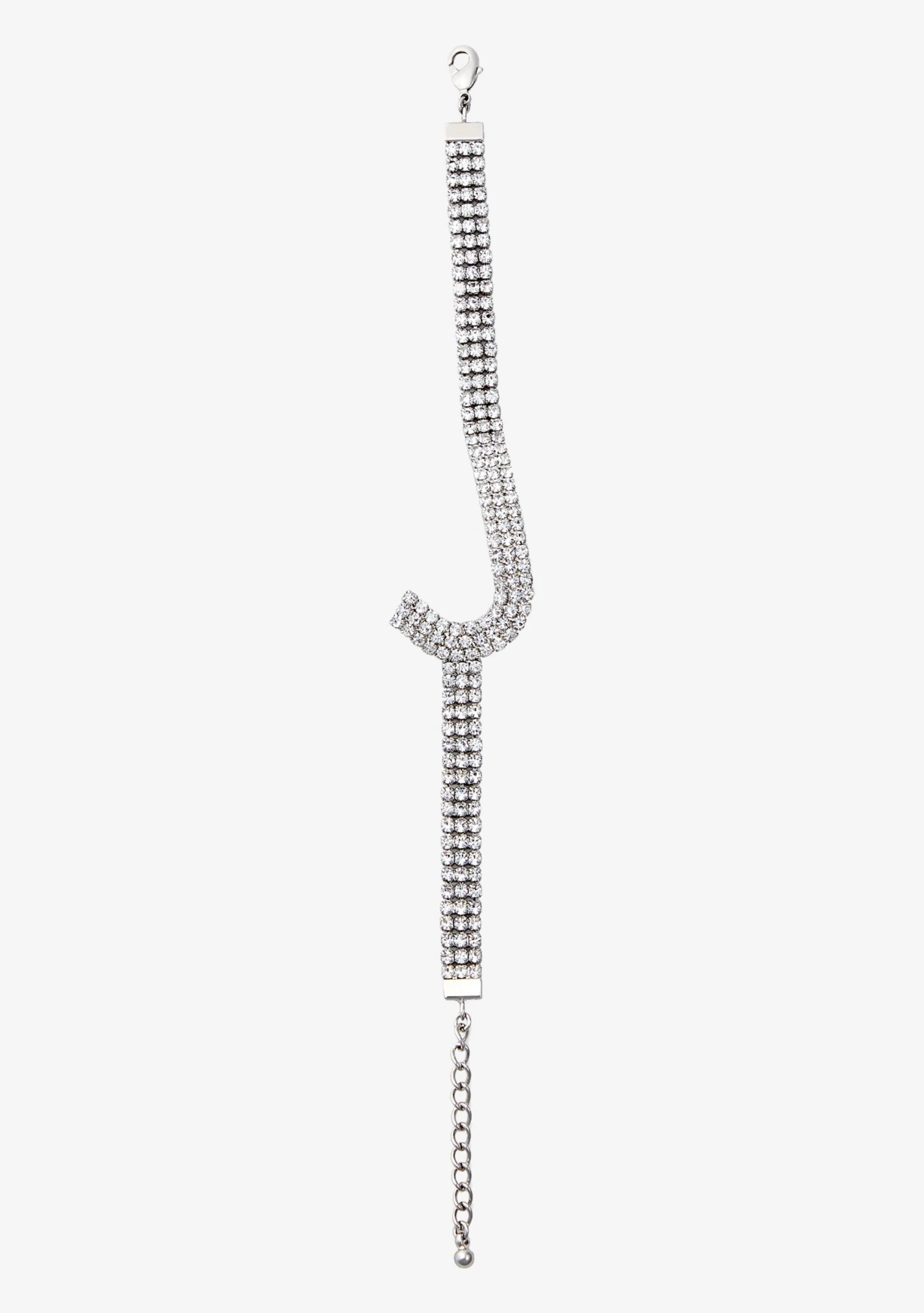 Add a touch of glamour to any look with our Alphabet Bracelet. Crafted with scores of light-catching crystals, the sleek letter design can be worn alone or stacked for a cool personalized effect. Shown here in Silver.