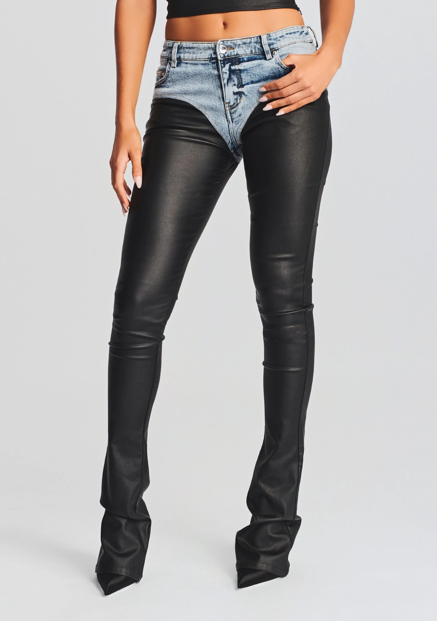 Unleash your inner rebel with our Rogan Coated Denim Pants, featuring eye-catching denim detailing that’s sure to set you apart from the crowd. Shown here in Alani Coated Black.