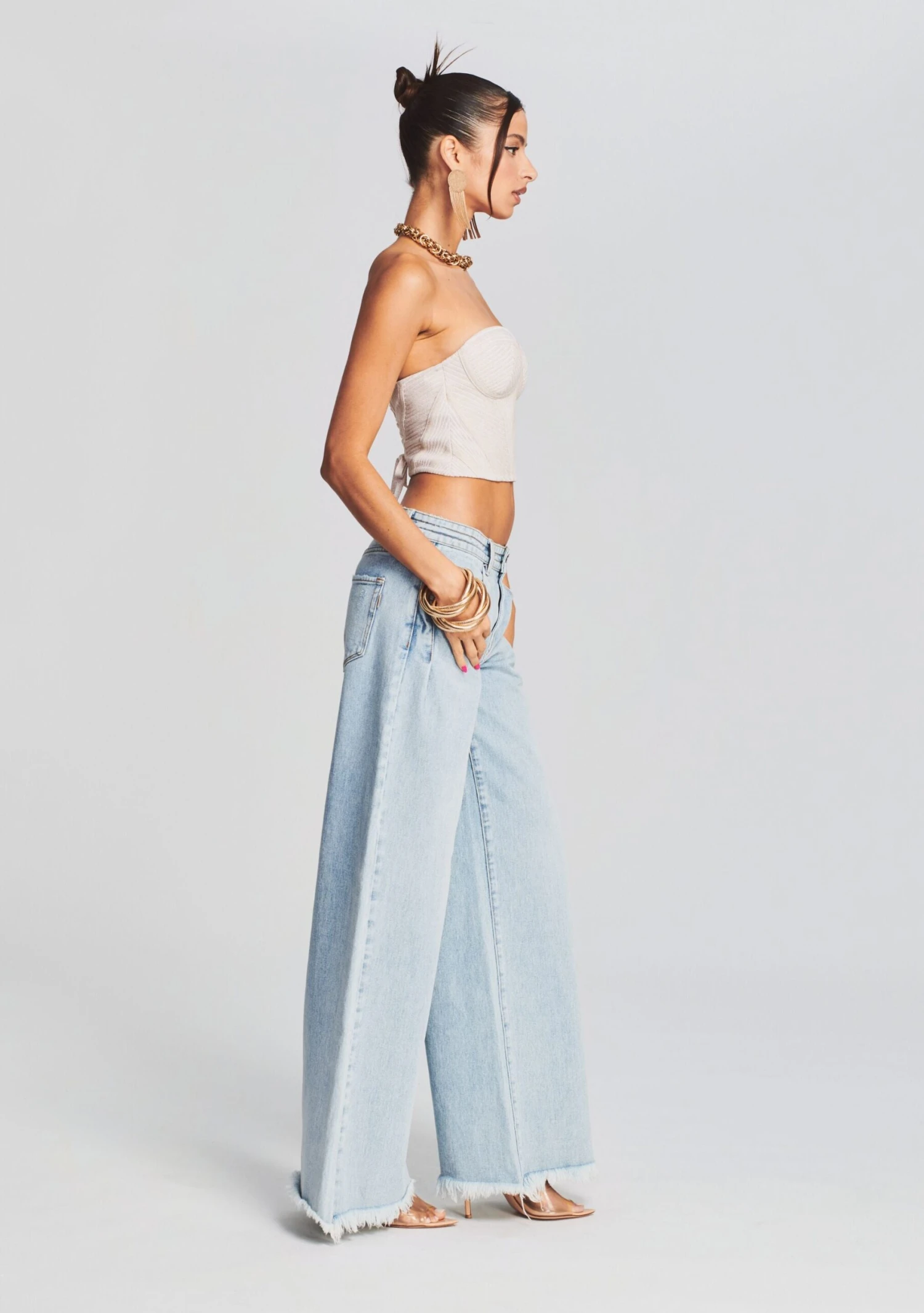 Showcase your style expertise with our strapless Sami Corset. Incorporating a semi-sweetheart neckline and ribbed-like design, this bustier perfectly blends sophistication and sensuality—sure to leave a lasting impression. Shown here in White/Gold.