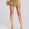 Elevate your style in our Savannah Skirt. This maxi includes an ultra side slit and embellished by flat radiant sequins. Shown here in Silver.
