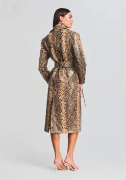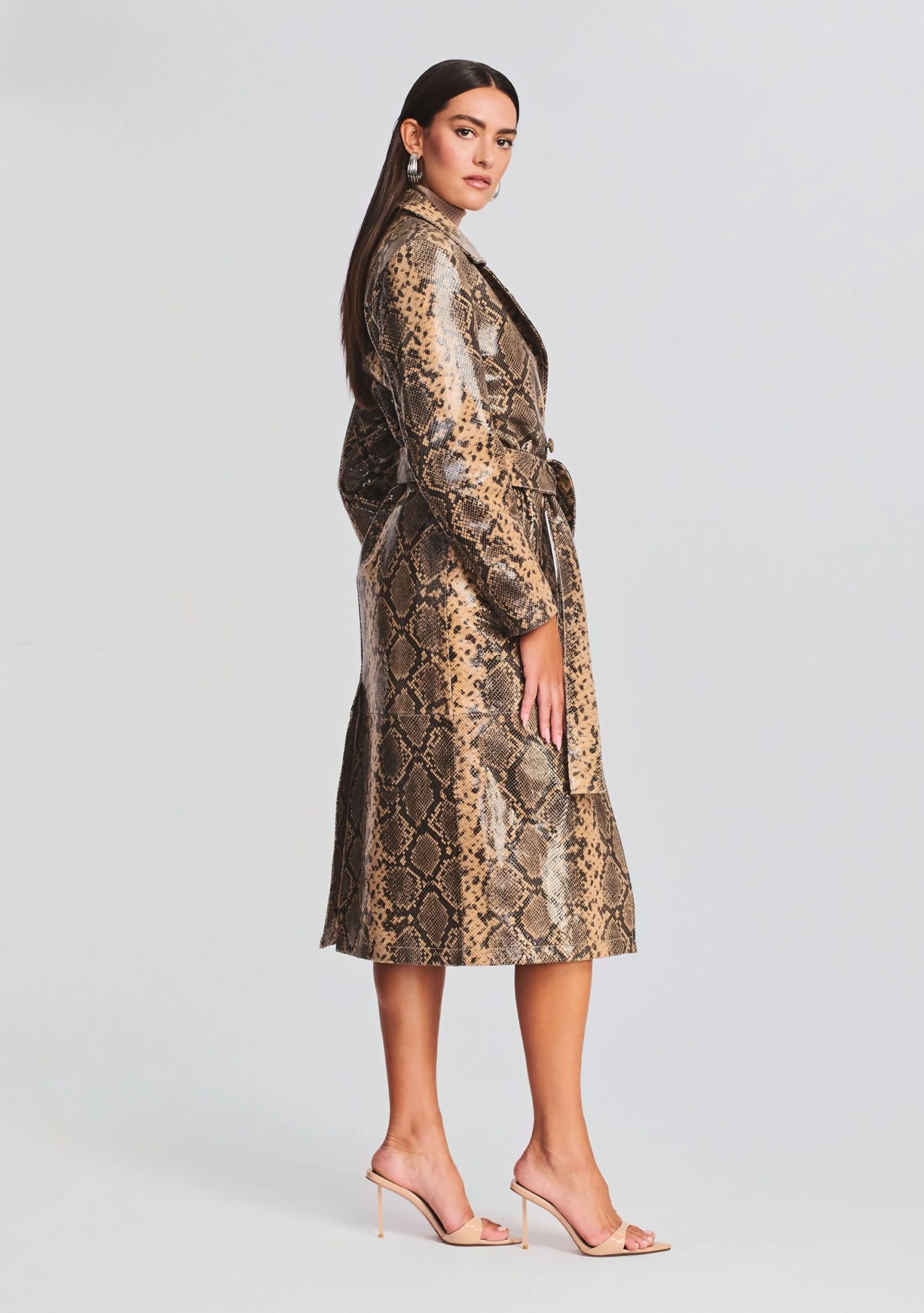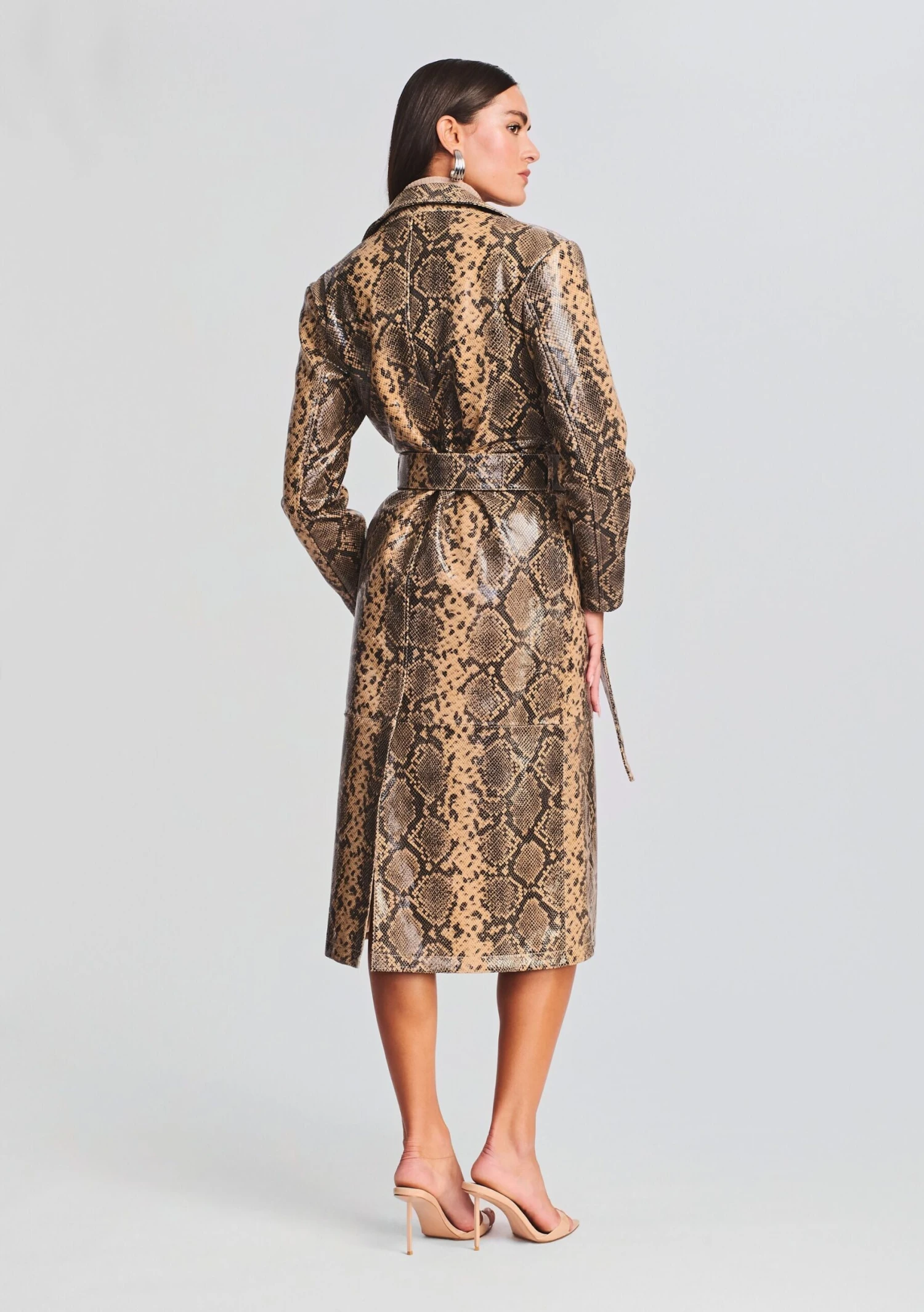 Encompass ultimate drama with our Steffan Coat. This leather trench jacket features long sleeves, a waist tie belt, and oversize lapels. Shown here in Tannin Snake.