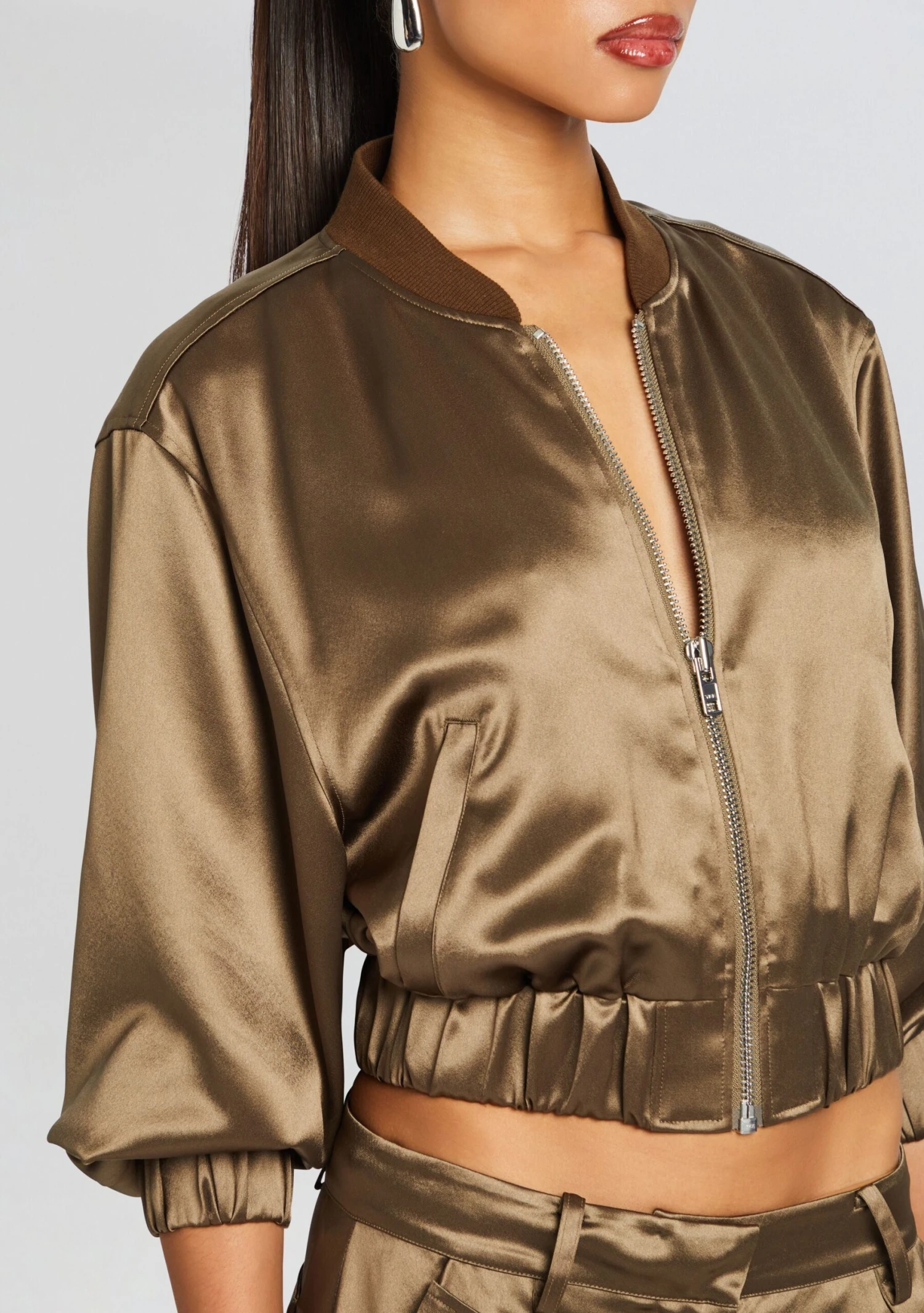 Make a bold statement with our Wes Jacket, the perfect addition to your wardrobe for those who crave both style and functionality. This jacket boasts a cuffed hem and cuffed sleeves, adding a touch of sophistication to your ensemble. The front zip up closure offers ease and convenience, while the versatile green hue adds a pop of color to any outfit. Whether you’re heading out for a casual day or a night on the town, this bomber jacket is sure to turn heads and make you stand out from the crowd. Shown here in Military Green.